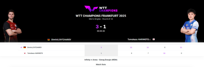 第四局张本智和3-1开场,奥恰洛夫追到3-4,随后奥恰洛夫6-4领先,奥恰洛夫连拿两分后已经8-4领先张本智和,张本智和失误4-9,奥恰洛夫10-5赛点,最终37岁的老将11-6拿下胜利。